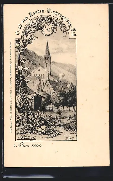 Künstler-AK Schiltach, Landes-Kirchengesang-Fest 1899, Ortspartie mit Kirche