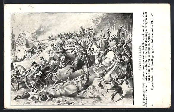 Künstler-AK Schlacht bei Satanow am Zbrucz 1914