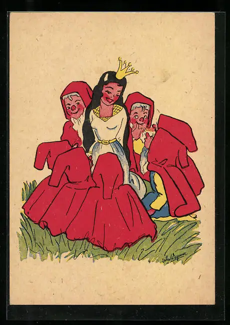 Künstler-AK Schneewittchen und ihre sieben Zwerge