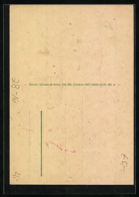 Personenbezogene Daten auf der Rückseite der Karte wurden durch blauen Textmarker unkenntlich gemacht. Die blauen Stellen sind auf die Vorderseite durchgeweicht und wirken sich negativ auf das Postkartenfoto aus