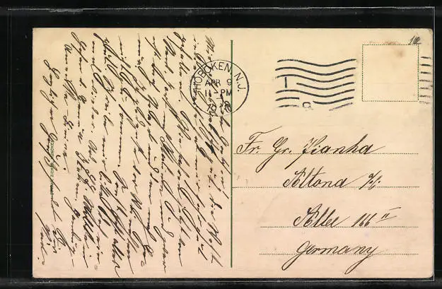 alte Ansichtskarte, gelaufen 1910, Briefmarke entfernt, Eckknick oben li., Linke Ecken bestoßen, Bugspur oben li., guter Zustand