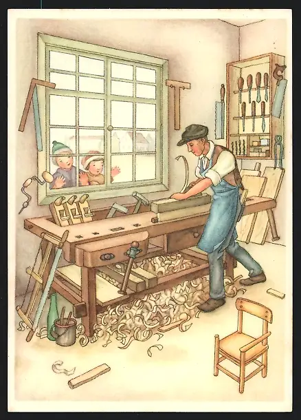 Künstler-AK Schreinermeister in seiner Werkstatt