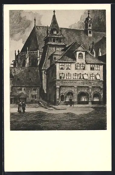 Künstler-AK Schwäbisch-Gmünd, Strassenpartie mit Buchhandlung Joerg
