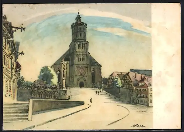Künstler-AK Schwäbisch Hall, Blick auf St. Michael-Kirche