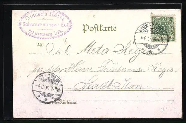 alte Ansichtskarte, gelaufen 1899, guter Zustand