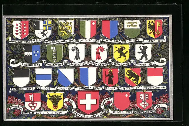 Künstler-AK Schweiz, Die Kantonswappen der Schweiz