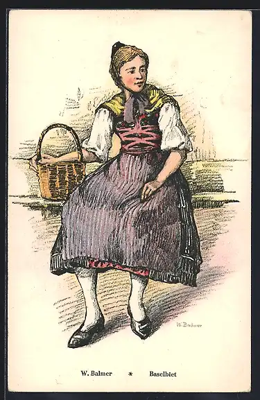 Künstler-AK Schweiz, Frau aus Baselbiet in Tracht