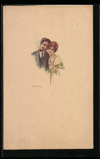 Künstler-AK Sergio Bompard: Herr mit Tabakspfeife und Frau