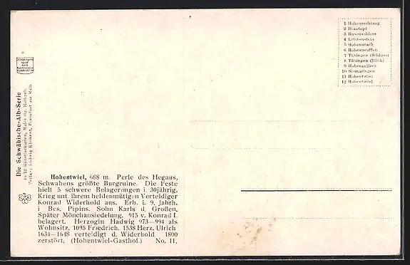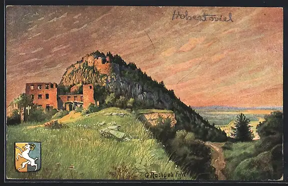 Künstler-AK Singen, Festung Hohentwiel mit Wappen