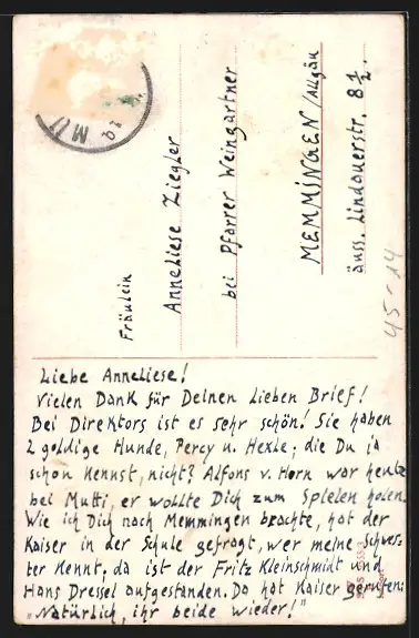 alte Ansichtskarte, gelaufen, Briefmarke entfernt, rückseitig Oberflächenschaden, guter Zustand