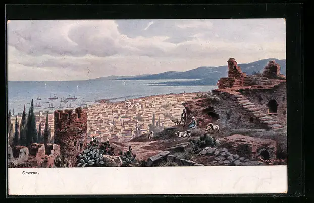 Künstler-AK Smyrna, Totalansicht aus der Vogelschau