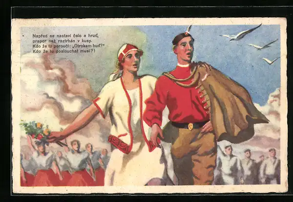 Künstler-AK Sokol, Soldat mit Frau
