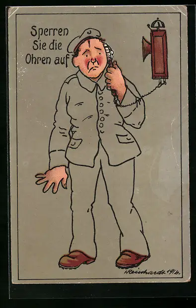 Künstler-AK Soldat am Fernsprecher, Soldatenhumor