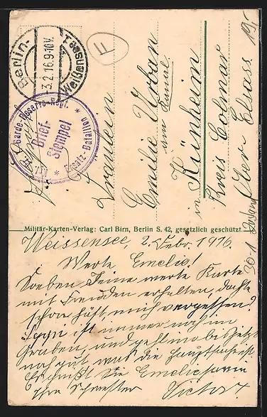 alte Ansichtskarte, gelaufen 1916, Eckknick re. oben, guter Zustand
