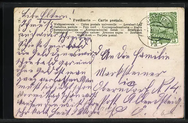 gelaufen 1911, Einrisse unten li. und li. unten, Eckknick oben li., guter Zustand