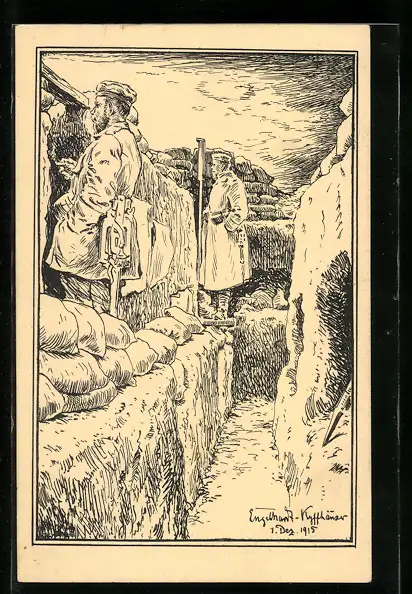 Künstler-AK Soldaten des Res. Jäger-Batl. 4 im Schützengraben