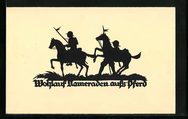 Künstler-AK Soldaten zu Pferd, Scherenschnitt