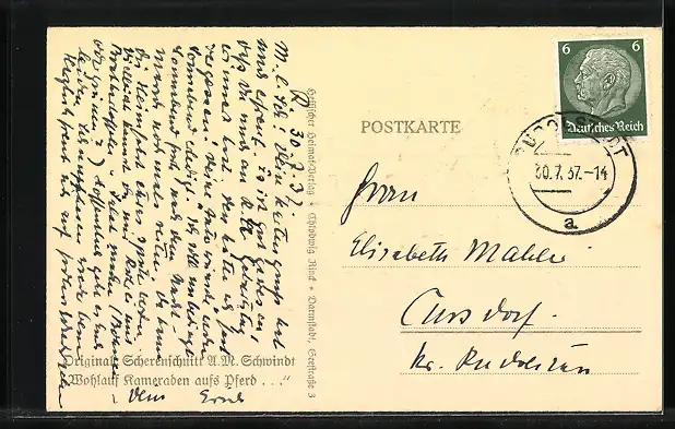 alte Ansichtskarte, gelaufen 1937, guter Zustand