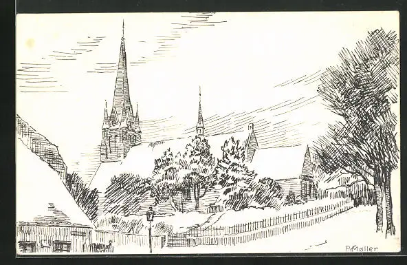 Künstler-AK Sonderborg, Totalansicht von der Kirche