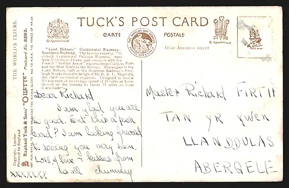 Künstler-AK Southern Railway, Continental Express, Lord Nelson