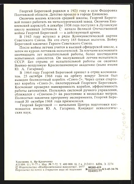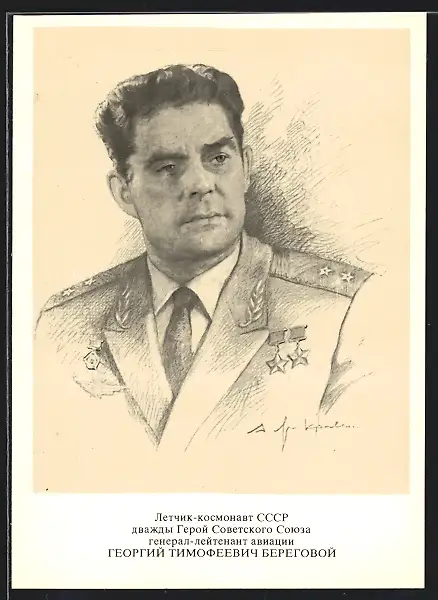 Künstler-AK Sowjetischer Kosmonaut Beregowoi in Uniform