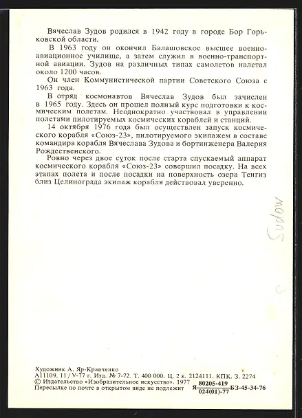 Künstler-AK Sowjetischer Kosmonaut Sudow