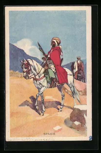 Künstler-AK Spahis, arabischer Soldat zu Pferd