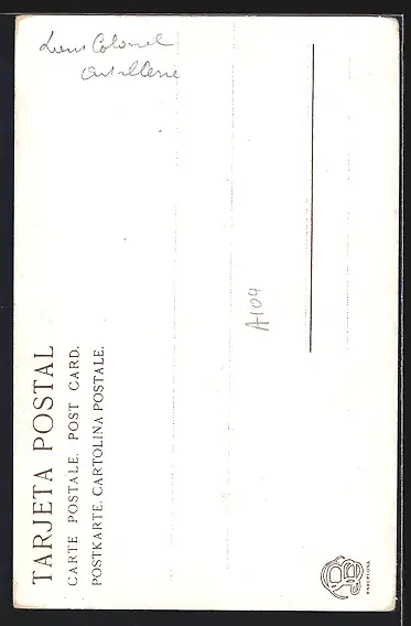 Personenbezogene Daten auf der Rückseite der Karte wurden durch blauen Textmarker unkenntlich gemacht. Die blauen Stellen sind auf die Vorderseite durchgeweicht und wirken sich negativ auf das Postkartenfoto aus