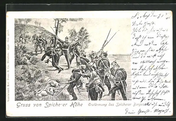 Künstler-AK Spicherer Höhe - Erstürmung des Spicherer Berges, Reichseinigungskriege