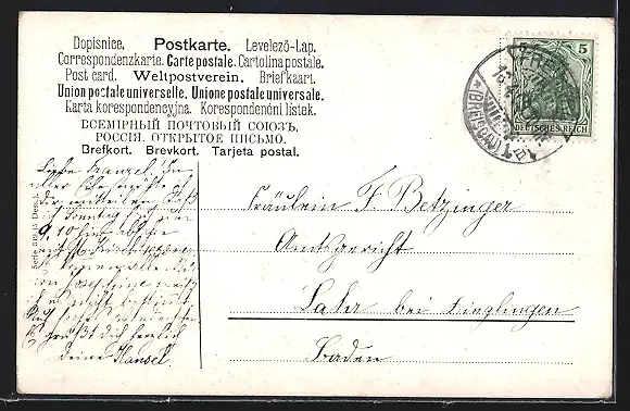 alte Ansichtskarte, gelaufen 1909, Stempelspur, guter Zustand