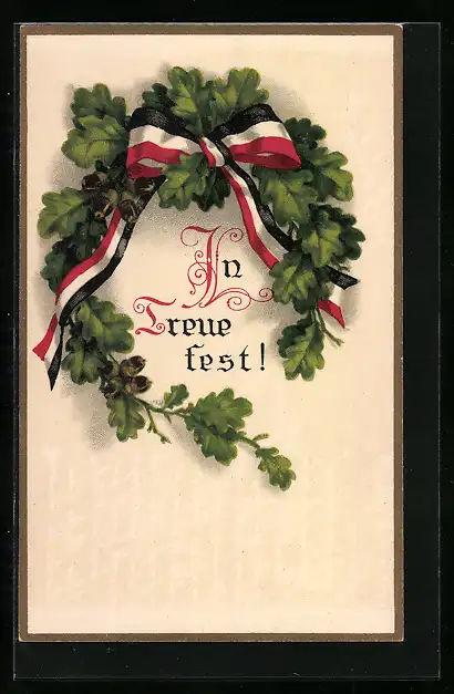 Künstler-AK Spruch In Treue fest!, Eichenlaub-Kranz