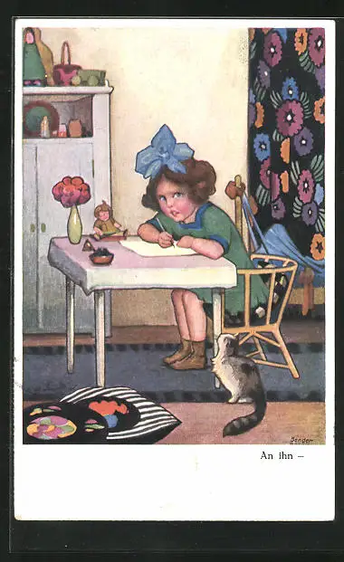 Künstler-AK St. Bender: An ihn, Mädchen schreibt einen Brief