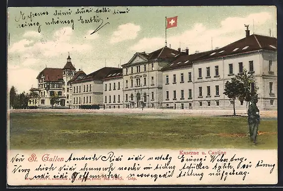 Künstler-AK St. Gallen, Kaserne und Cantine