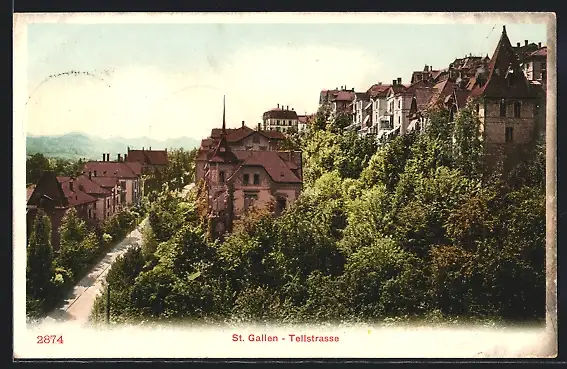 Künstler-AK St. Gallen, Tellstrasse mit Villen