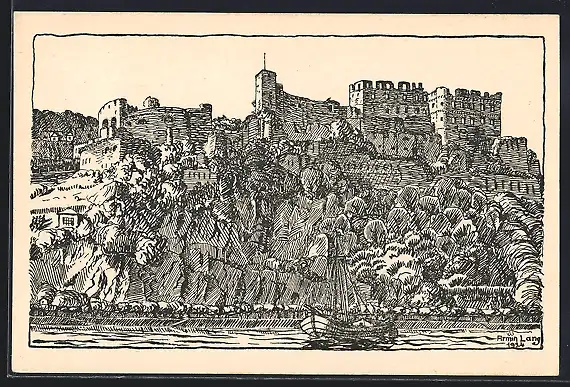 Künstler-AK St. Goar a. Rhein, Ruine Rheinfels