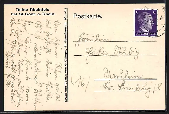 alte Ansichtskarte, gelaufen 1943, guter Zustand