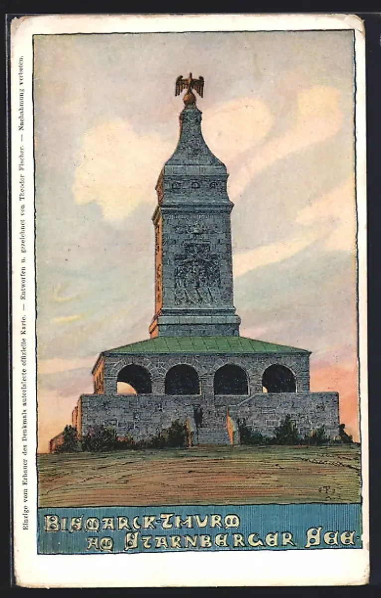 Künstler-AK Starnberg /Sternberger See, Bismarckturm