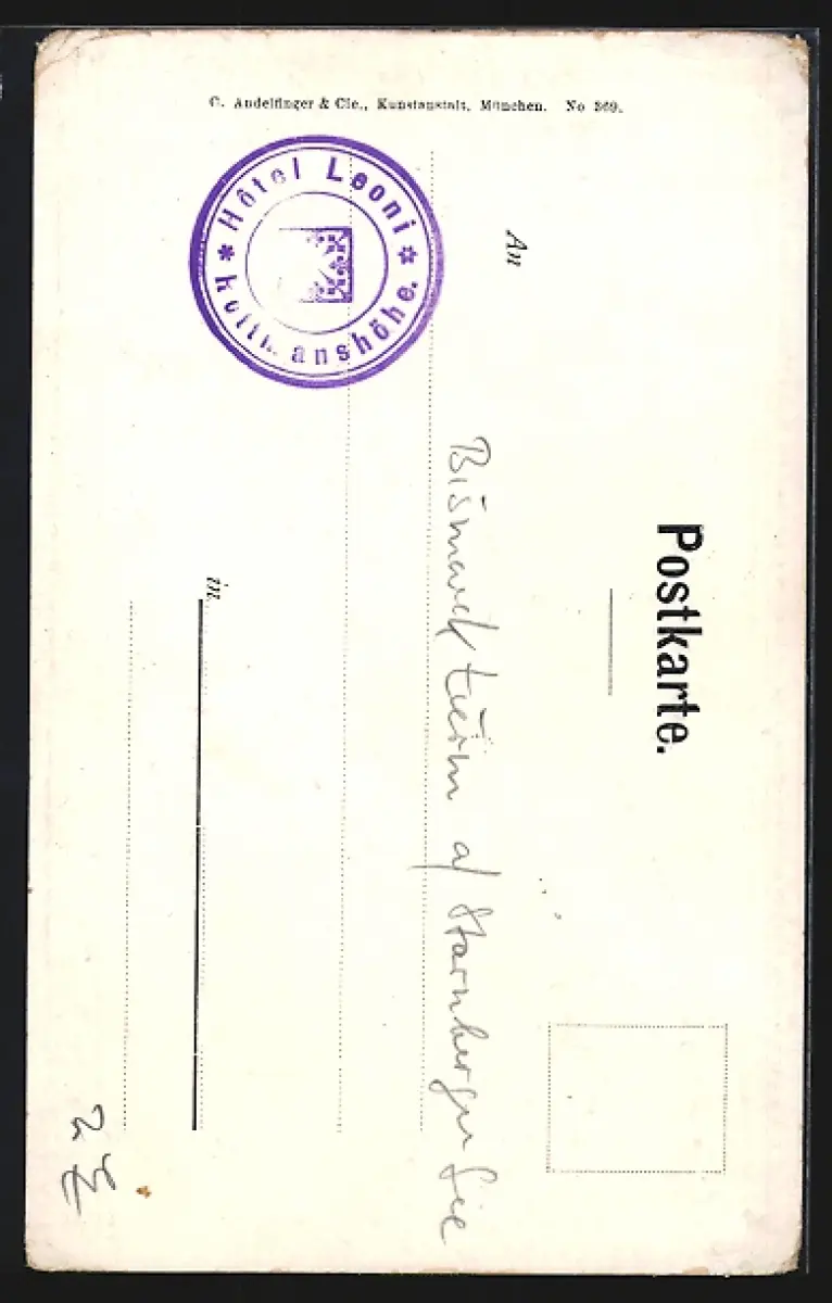 Personenbezogene Daten auf der Rückseite der Karte wurden durch blauen Textmarker unkenntlich gemacht. Die blauen Stellen sind auf die Vorderseite durchgeweicht und wirken sich negativ auf das Postkartenfoto aus