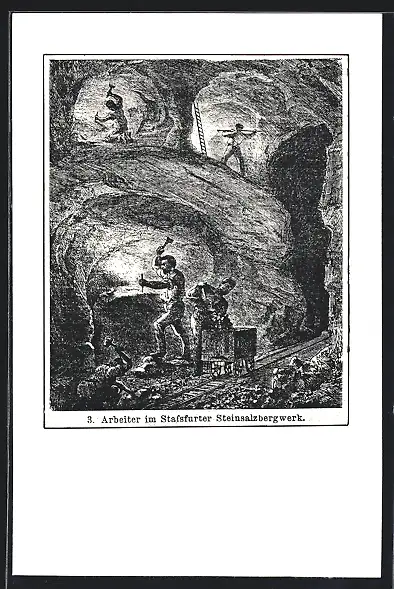 Künstler-AK Stassfurt, Arbeiter im Steinsalzbergwerk