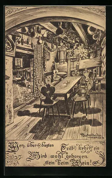 Künstler-AK Sterzing, Central-Hotel Alte Post, Innenansicht