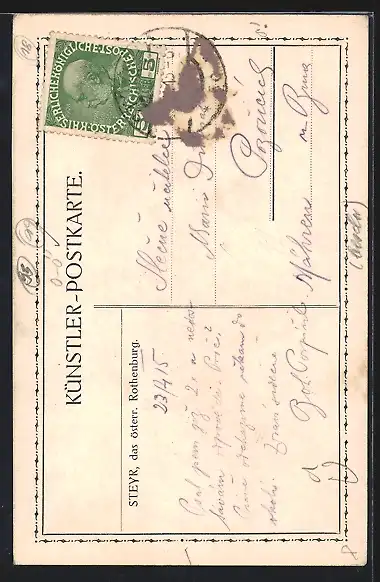 alte Ansichtskarte, gelaufen, rückseitig Klebe- und Papierreste, guter Zustand
