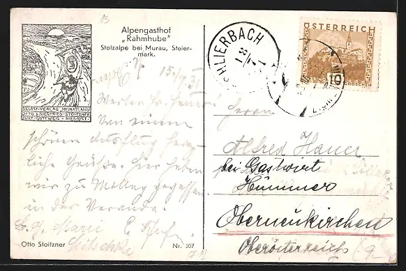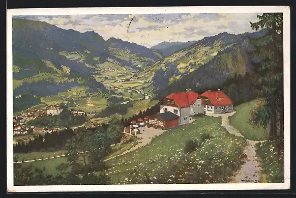 Künstler-AK Stolzalpe, Alpengasthof Rahmhube