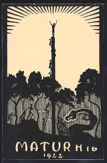 Künstler-AK Studenten erklimmen eine Säule, Matura 1922