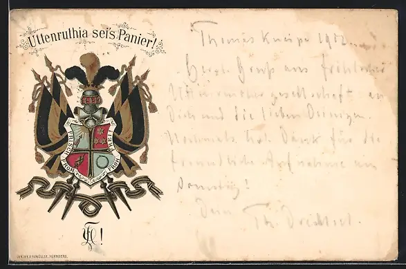 Künstler-AK Studentenwappen der Uttenruthia