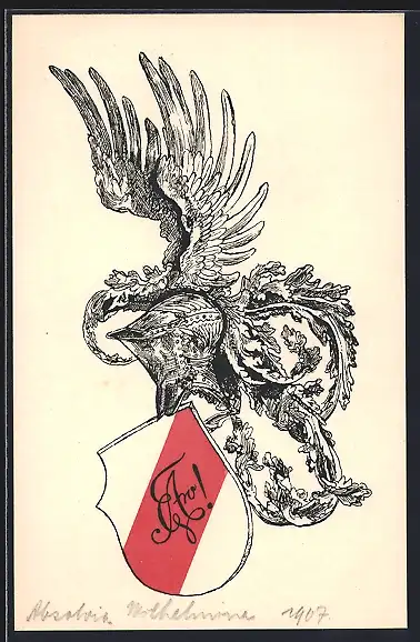Künstler-AK Studentenwappen und geflügelter Ritterhelm