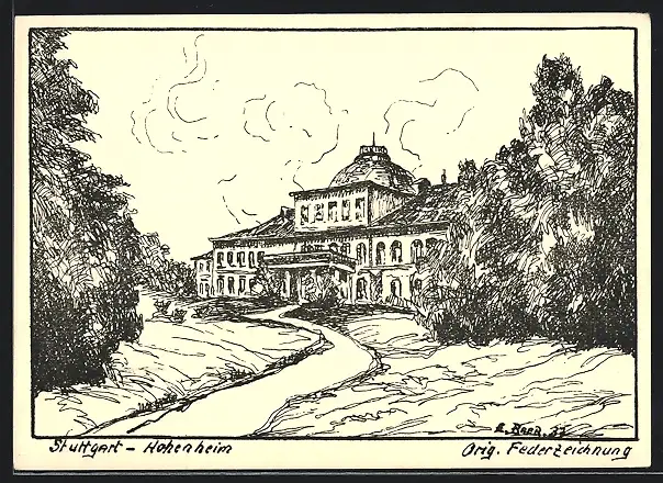 Künstler-AK Stuttgart-Hohenheim, Blick zum Schloss