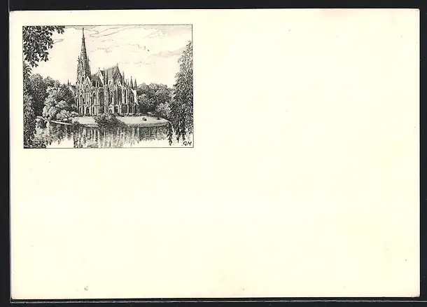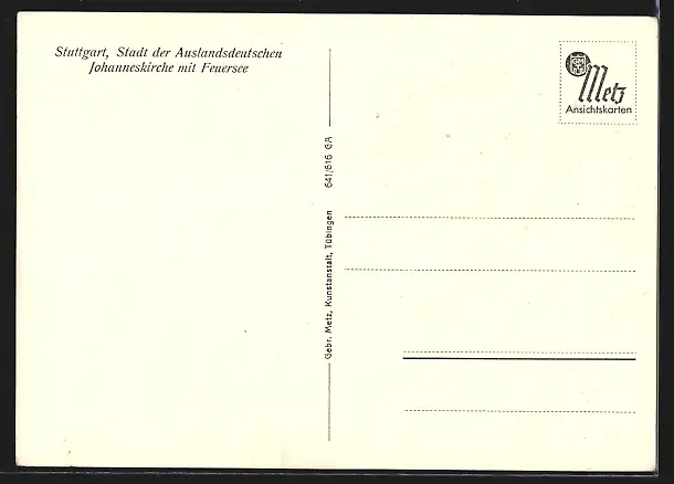 Künstler-AK Stuttgart, Johanneskirche mit Feuersee