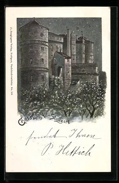 Künstler-AK Stuttgart, Turmhaus in Alt-Stuttgart