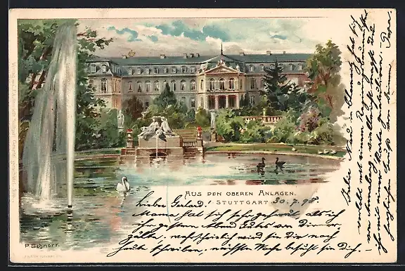 Künstler-AK Stuttgart, Wasserkunst in den oberen Anlagen