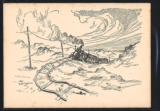 Künstler-AK Sylt, Insel-Express unter Volldampf